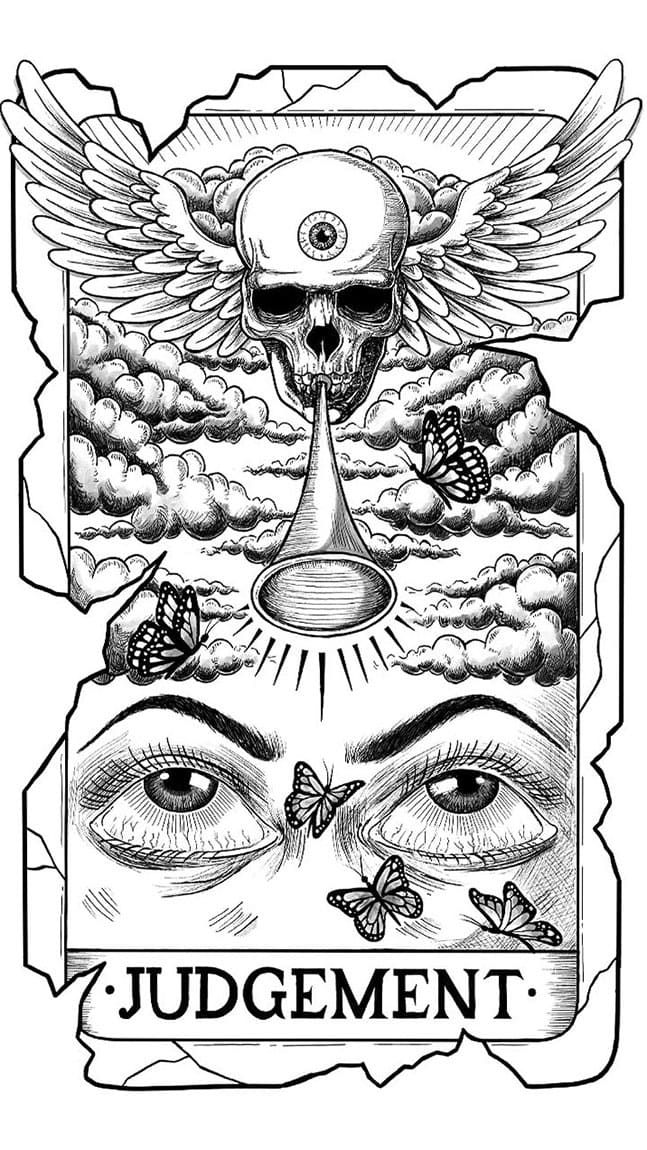 В путешествии по Старшим Арканам Таро наступает момент, когда призыв к глубоким внутренним изменениям становится невозможно игнорировать. Карта «Суд» (или «Страшный Суд») — это символ духовного пробуждения, ответа на высший зов и кармического воздаяния. Татуировка с этим мощным образом выбирается теми, кто пережил перерождение, услышал свое истинное призвание и готов принять новую идентичность.