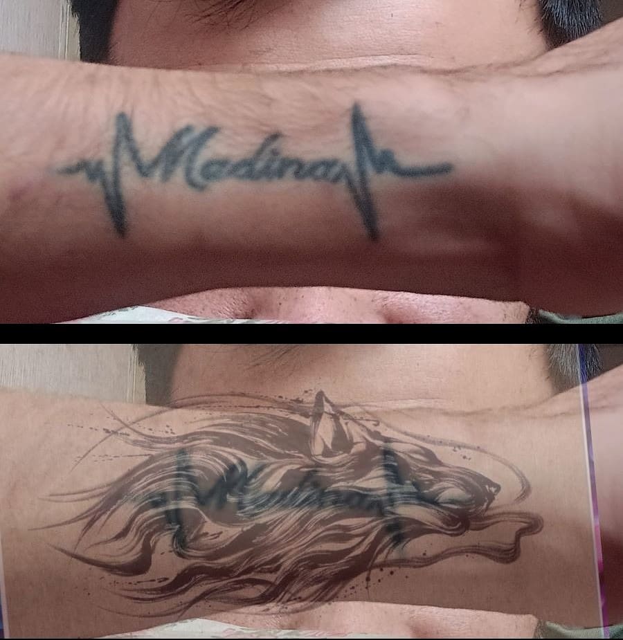 Запрос: Перекрытие татуировки волком. Бюджет и время ограничены