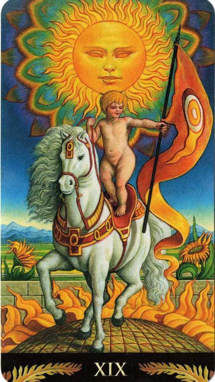 Ребенок на белом коне — Олицетворение невинности, радости, свободы и нового начала. Белый конь — чистота помыслов и энергия жизни.